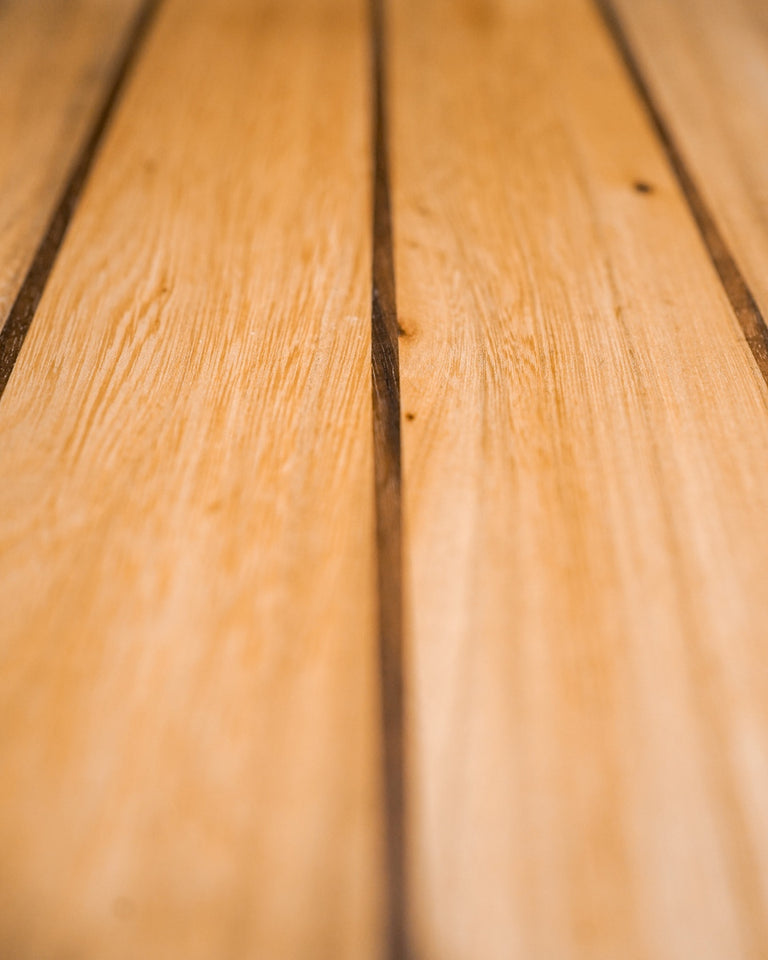 Keine metallischen Gegenstände dauerhaft drauflegen – durch die im Holz enthaltene Gerbsäure kann es zu dunklen Verfärbungen kommen